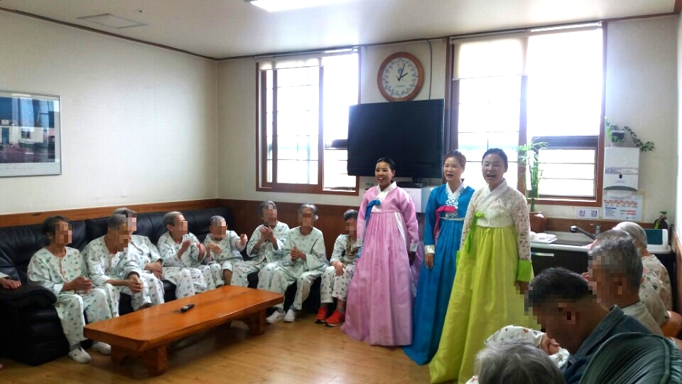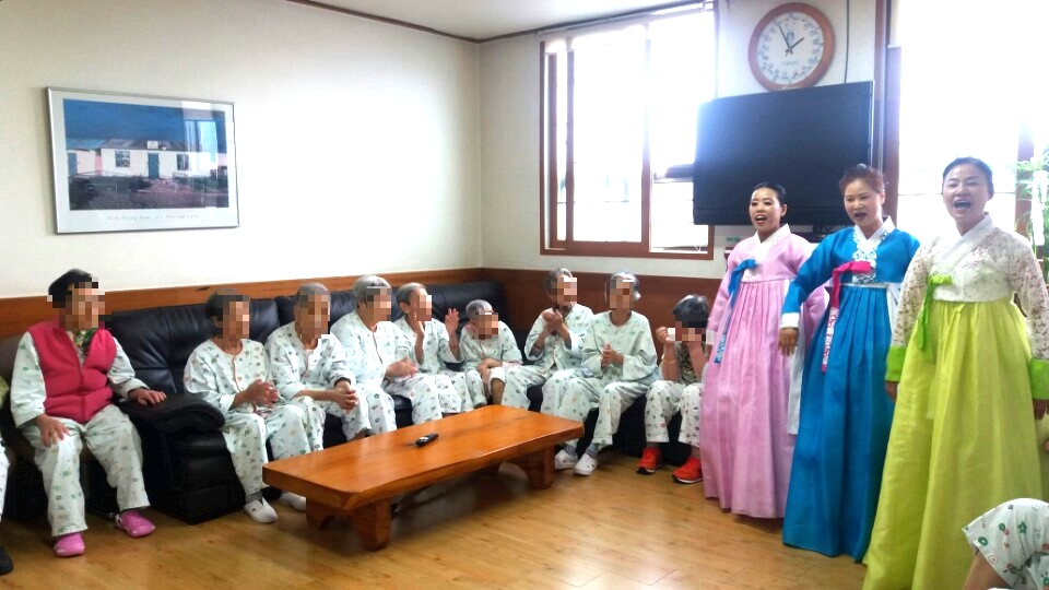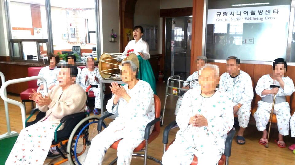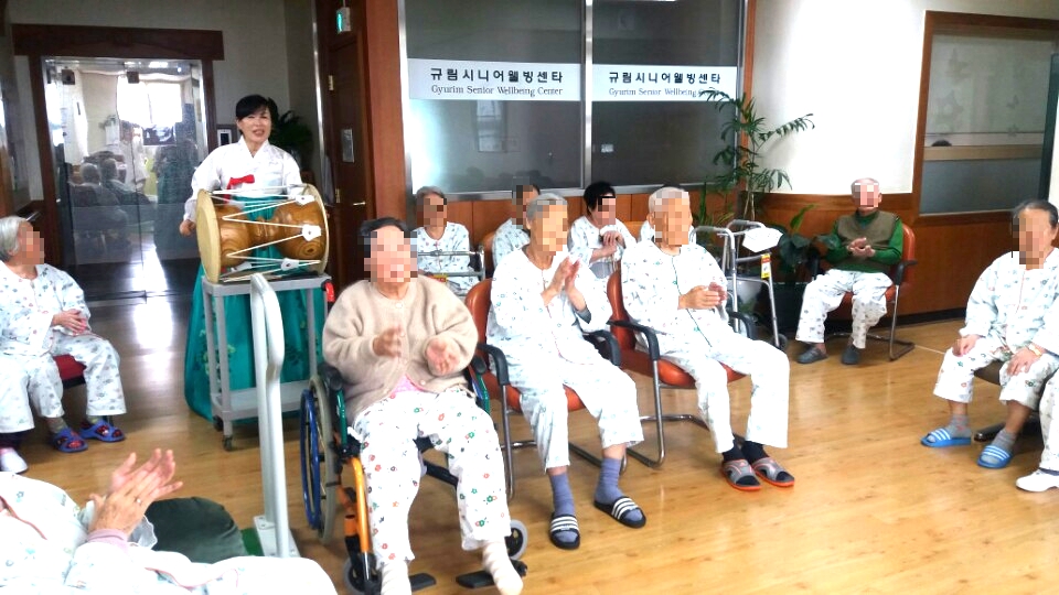덩더쿵 우리가락 전문국악인들의 장구연주에 민요를 부르시고 민요 중 어르신들이 아는 노래가 나오면 함께 노래를 부르는 모습을 볼 수 있었습니다. 공연을 관람하시며 노래도 부를 수 있어 어르신들이 큰 만족감을 가지셨습니다.