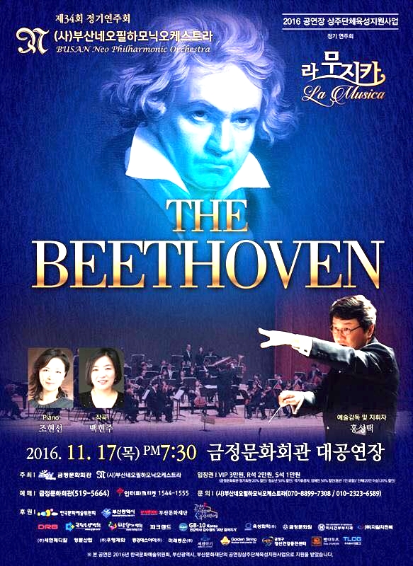 오는 11월 17일(목) 오후 7시30분, 금정문화회관 대공연장에서 (사)부산네오필하모닉오케스트라(지휘 홍성택)의 연주로 제 34회 정기연주회 『THE BEETHOVEN』 이 개최됩니다 .