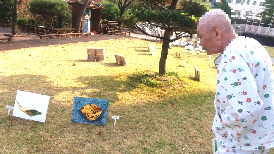 그림들 중 낙엽그림들을 보며 가을의 풍경과 잘 어울린다고 말씀하시는 어르신들도 계셨습니다.