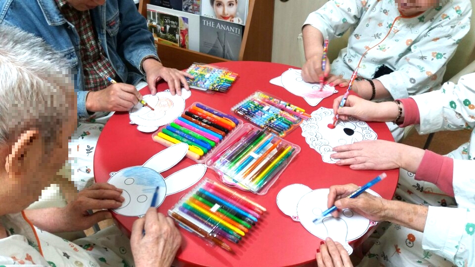 어르신들은 각자가 원하시는 동물가면 그림을 선택 하신 뒤 채색하여 작품을 완성해보시고 동물가면에