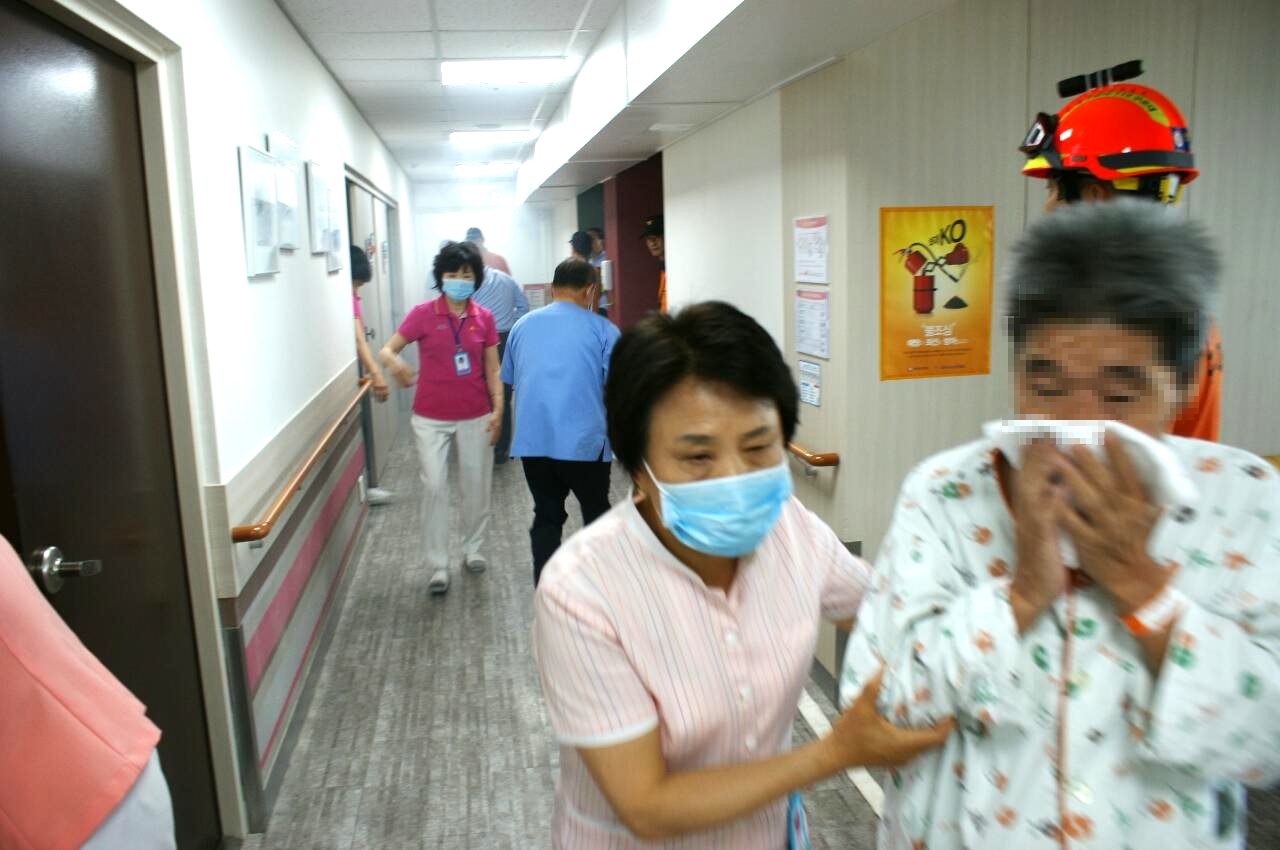 6병동 환자분은 옥상으로 1병동환자분은 외부로 신속한 대피훈련을 하였습니다.