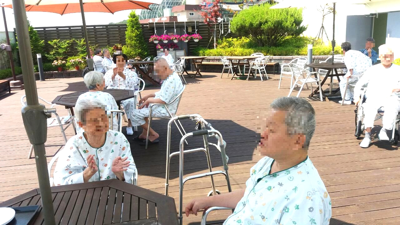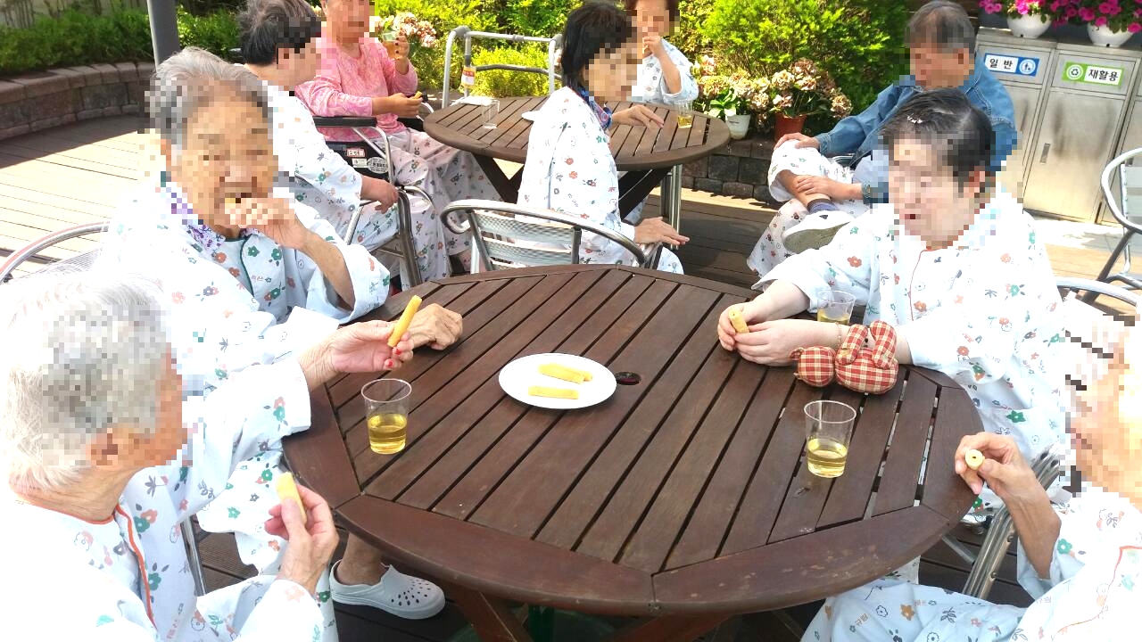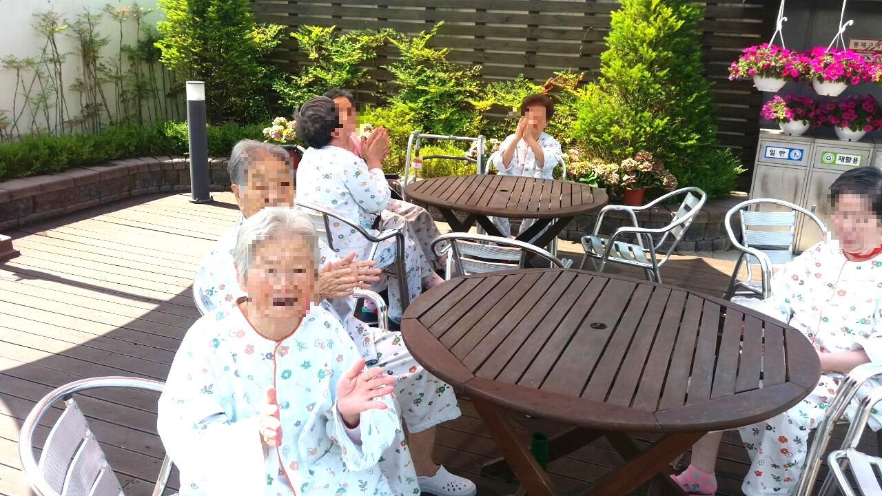 사회사업실-야외프로그램 오늘 오전 어르신들을 위한 야외프로그램이 있었습니다~^^ 어르신들은 햇빛을 쬐시며 다과를 드시고 체조와 노래장기자랑도 하셨습니다~! 많이 웃으시고 서로 도란도란 이야기도 하시는 즐거운 시간이었습니다. - 사회사업실 -