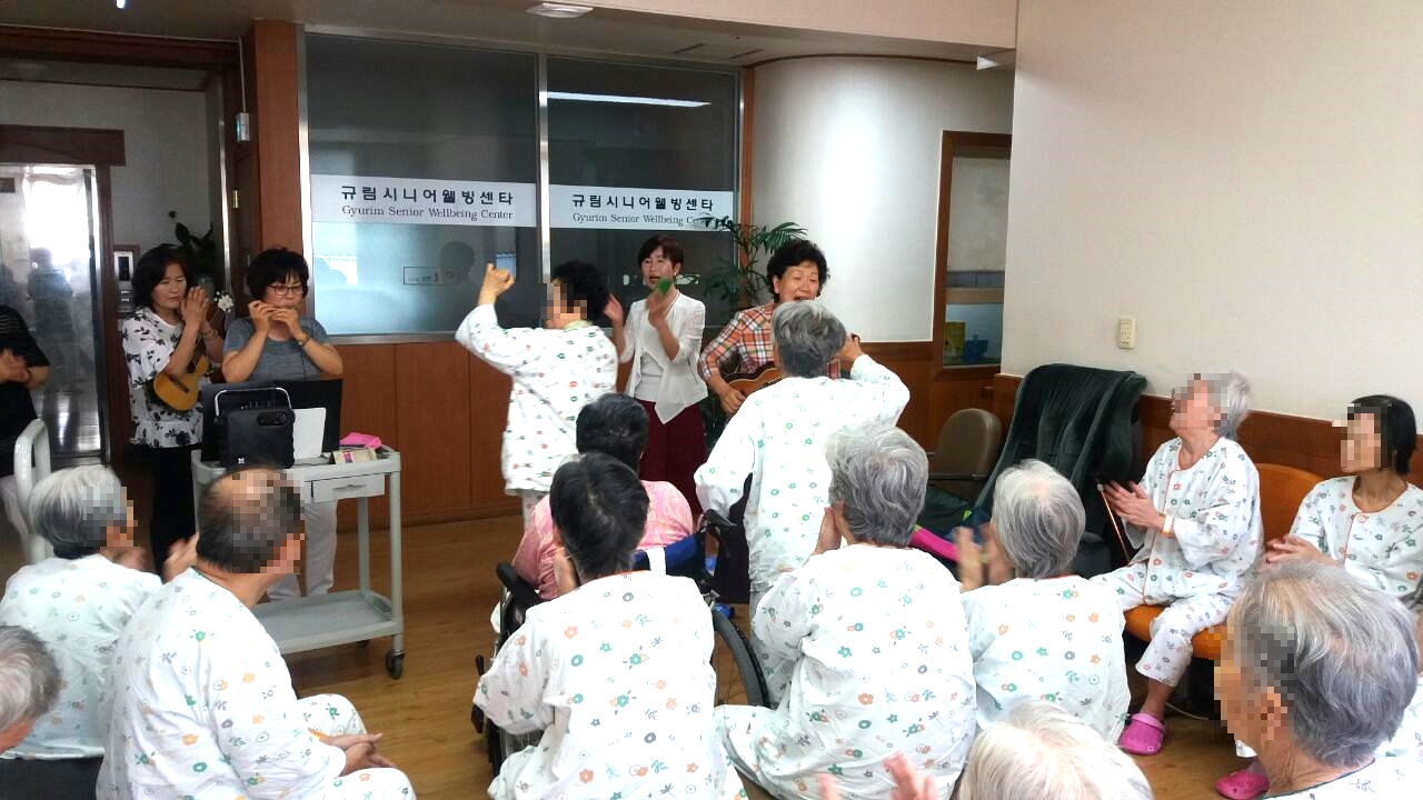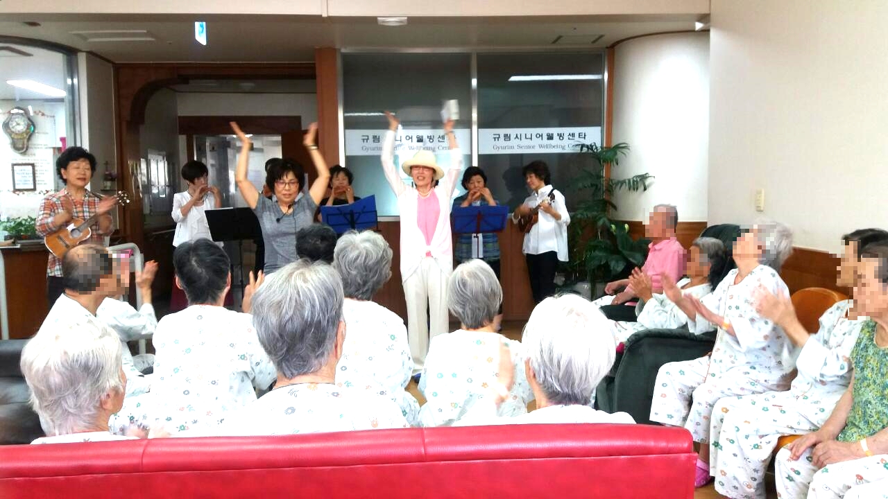 동래구봉사단 악기연주 6월 8일 동래구악기봉사단의 하모니카, 우쿠렐레, 오카리나, 플룻을 이용한 멋드러진 악기연주가 있었습니다~^^ 악기연주에 어르신들은 춤을 추시거나 박수를 치시고 아시는 연주곡이 나오면 노래를 부르시며 호응해주셨습니다. 봉사단의 건강체조도 잘 따라하시고 만담에도 웃고 박수를 치시며 즐거운 시간을 보내셨습니다~^^ - 사회사업실 -