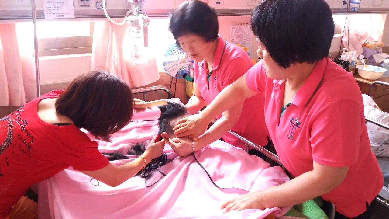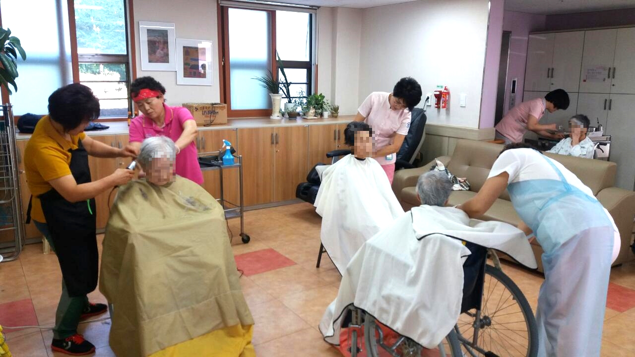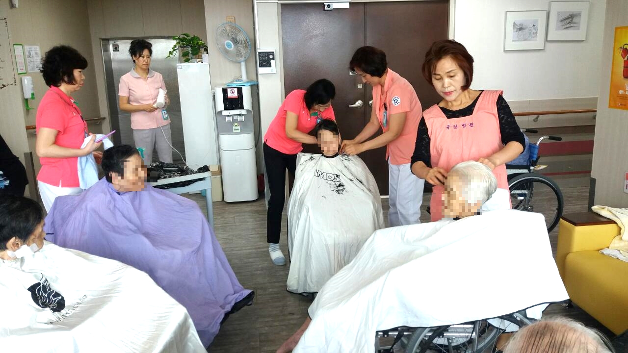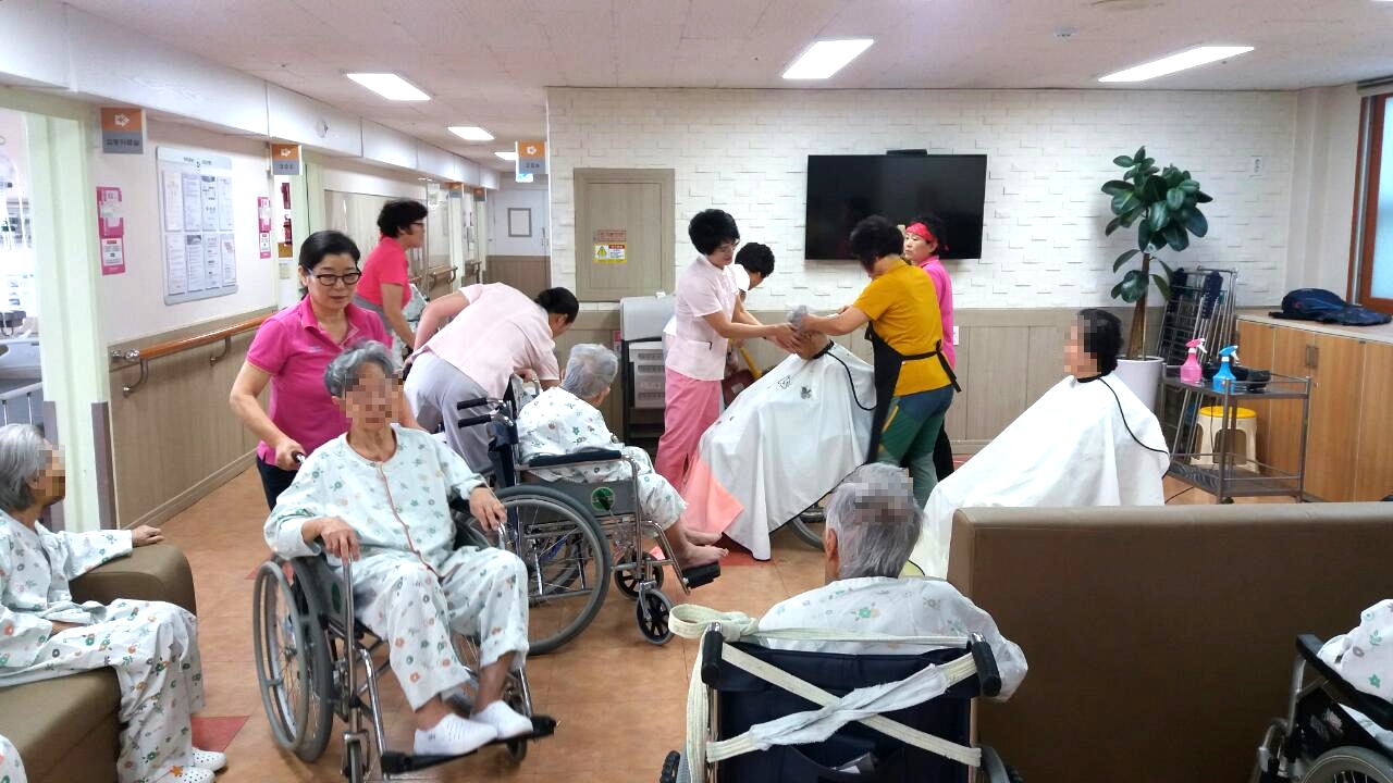 진선미봉사단 이미용실시 오늘 오전 2,3,6병동 어르신들을 위한 이미용이 있었습니다^^ 이미용을 하신 후 어르신들이 더욱 이쁘고 멋있어지셨어요~^^!! 최고최고~~!!♡ - 사회사업실 -
