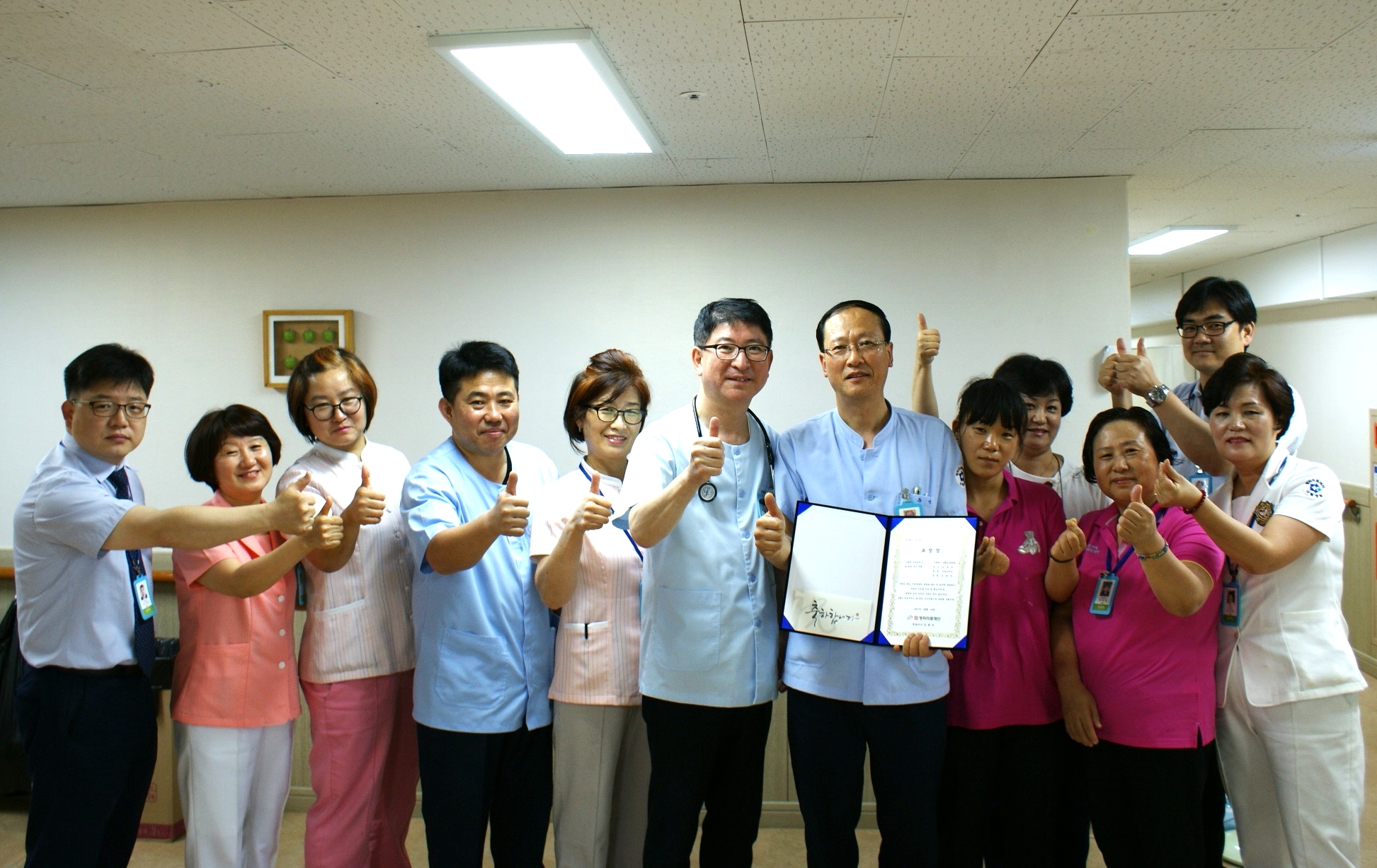 5월 이달의 의료서비스 질 향상 우수직원 간호조무사 : 김 동 성 항상 예의있고 모범적인 태도와 의료서비스 제공에 있어 최선을 다하여 이달의 의료서비스 질 향상 우수직원 으로 선정 되었습니다.