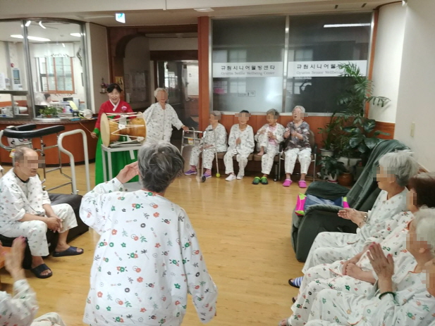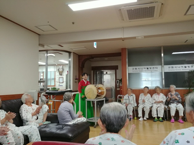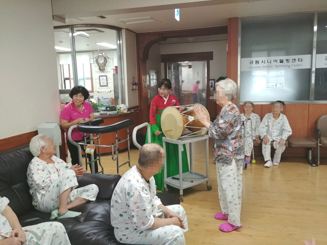 덩더쿵 우리가락 우리민요를 함께부르는 "덩더쿵 우리가락"프로그램이 있었습니다. 흥겨운 장구박자에 민요를 부르니 어깨춤이 절로나는 시간이였습니다. "얼씨구! 조오타! 지화자!잘한다" 다양한추임새도 넣으면서 모두 즐거운 시간을 가졌습니다. - 사회사업실 -