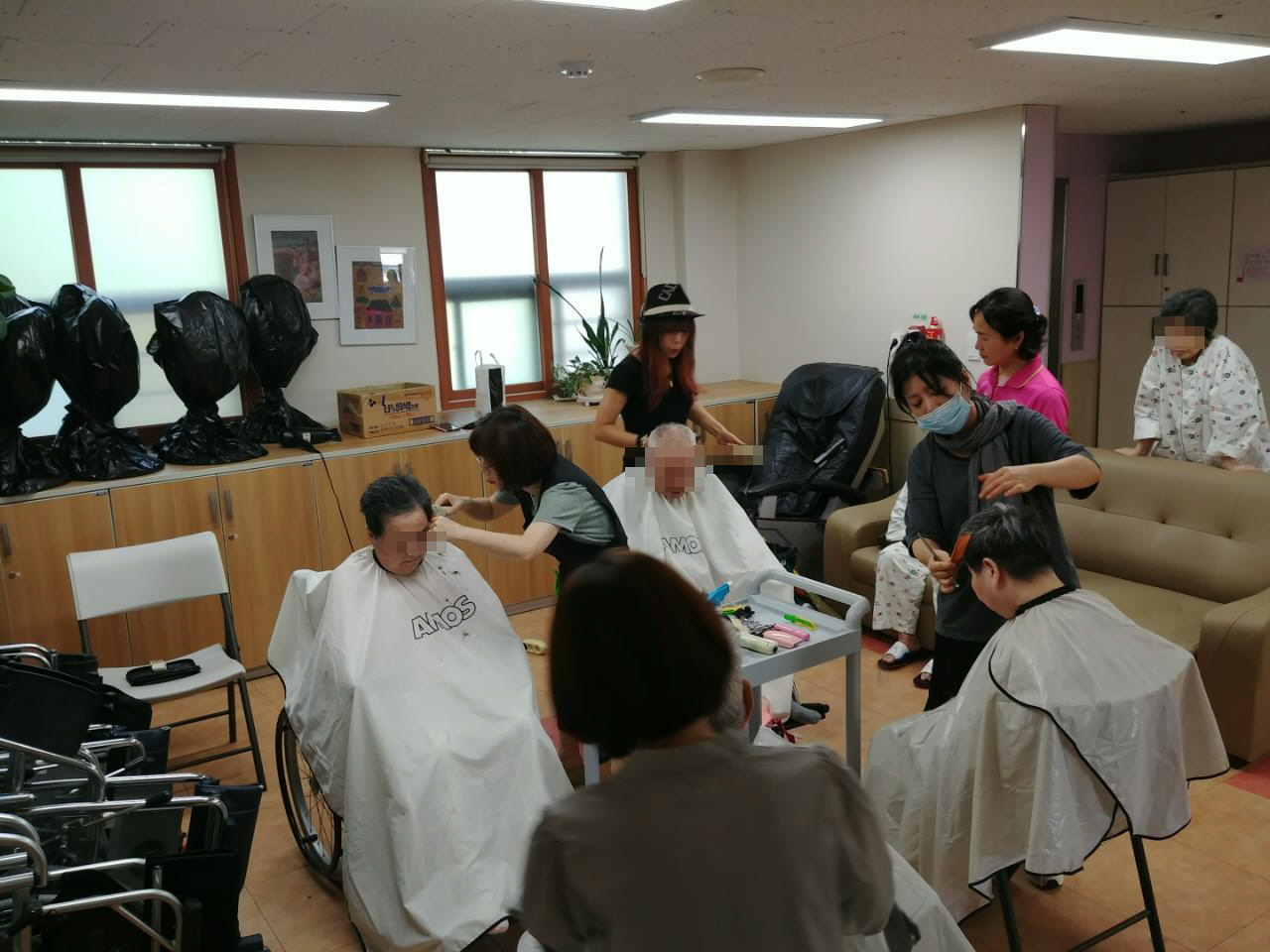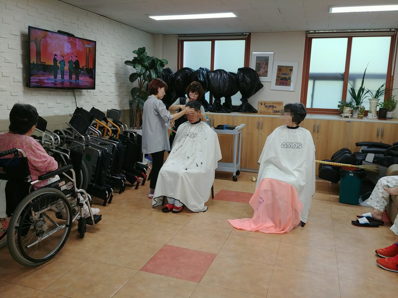 `화요봉사단`이미용서비스 이미용서비스가 있었습니다. 어르신들의 머리카락을 깔끔하게 커트하기위해 봉사단 선생님들이 방문주셨습니다. 봉사단의 아름다운손길에 어르신들이 너도나도 서비스를 받으셨어요. 서비스 만족도 100% ! 모두들 한층더 깔끔하고 세련된모습이 되셨습니다. - 사회사업실 -