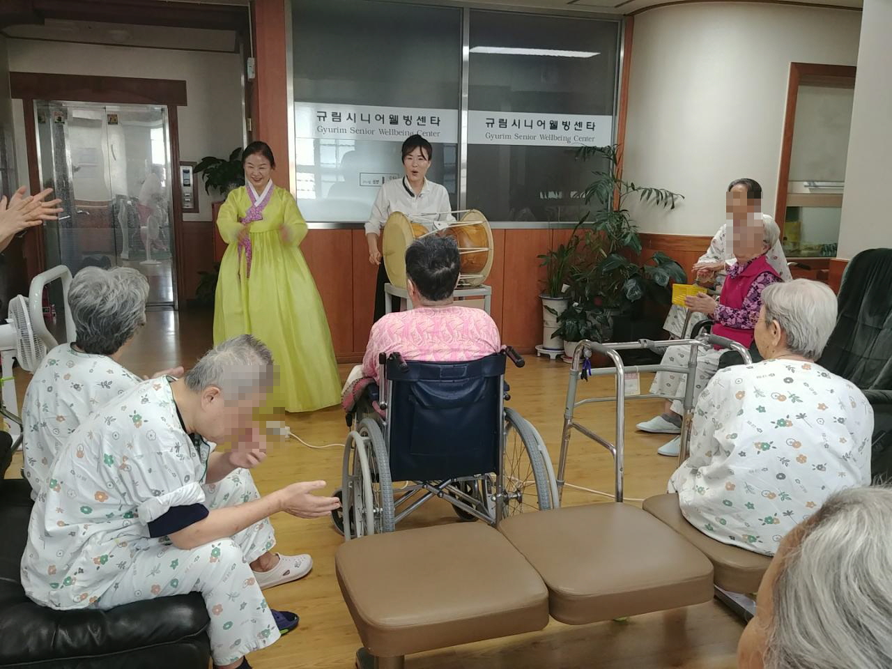 덩더쿵우리가락 덩더쿵 우리가락 봉사단이 방문했습니다. 저번주 연휴가겹쳐 조금지루해하셨던 어르신들이 오늘은 신나게 음악을 즐기셨는데요. 어느때보다 적극적인 춤사위를 볼수있었습니다. 주거니 받거니 민요도 부르고♪ 흔들흔들 어깨춤도 추고♬ 멋지게 어르신들이 한곡조씩 노래도부르고♩ 즐거운 시간을 가졌습니다. - 사회사업실 -