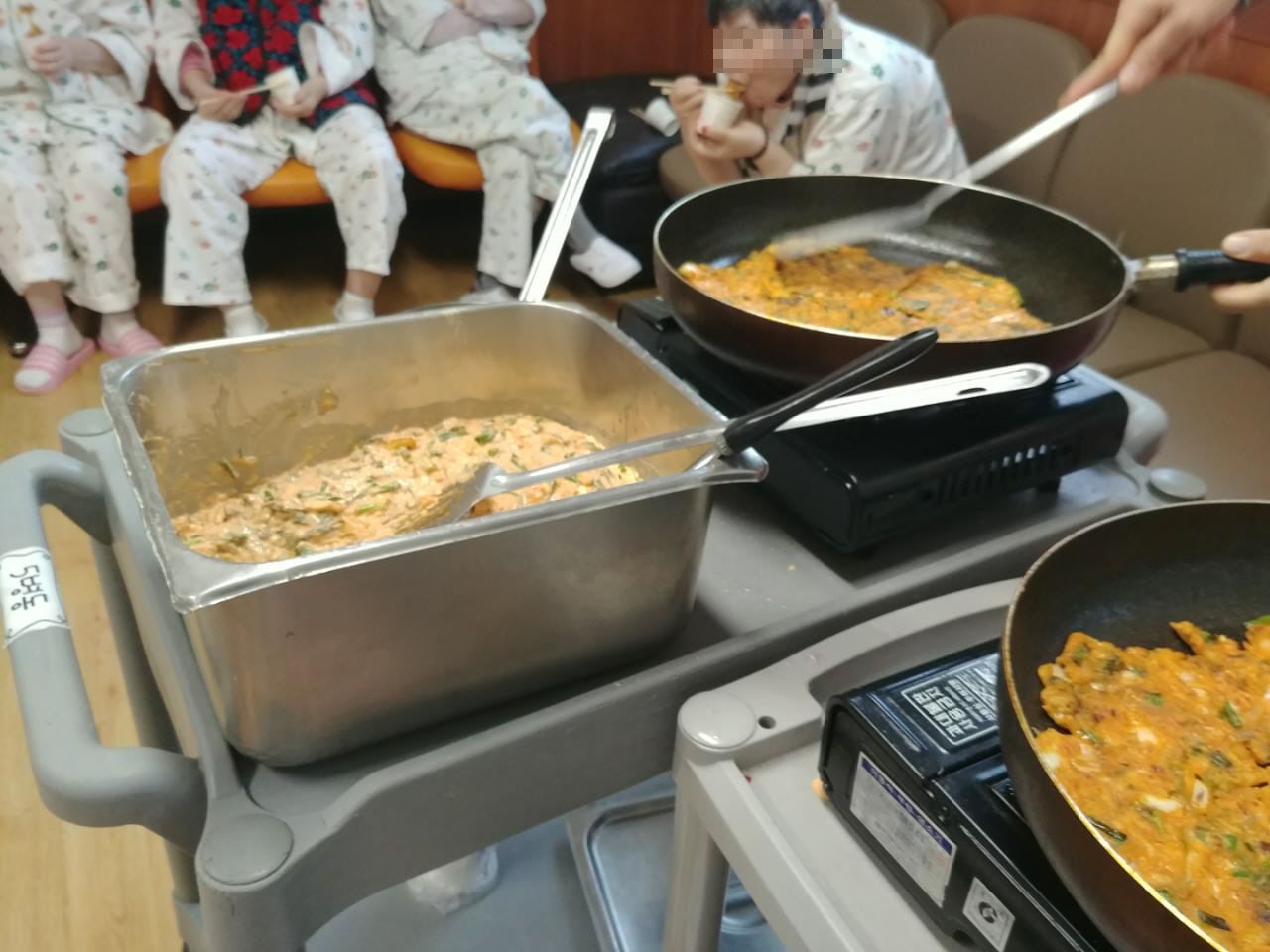 맛있는 김치와 파가 송송 박혀있는 김치전반죽을 후라이팬에 구워 김치전을 맛보는 시간이였습니다.