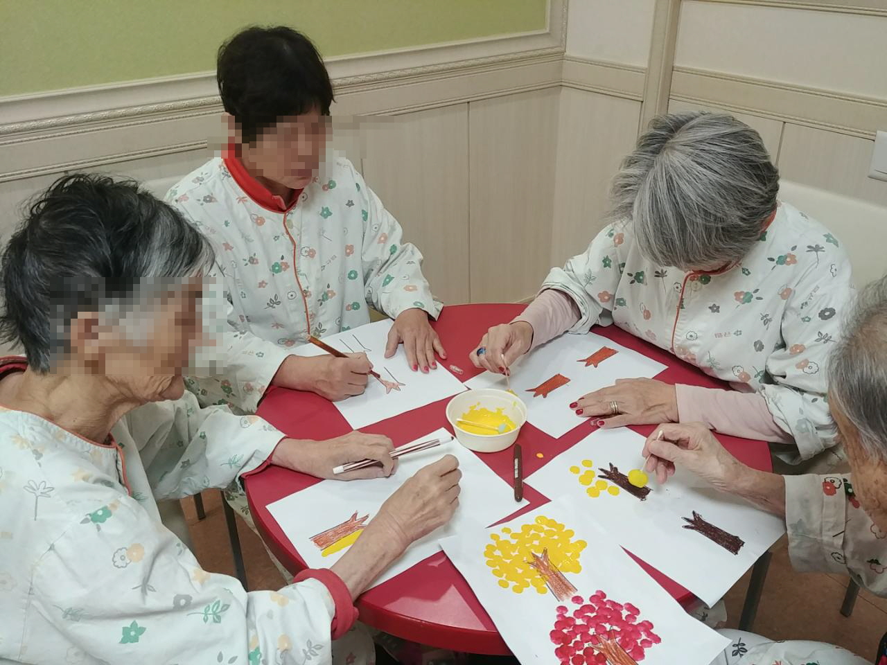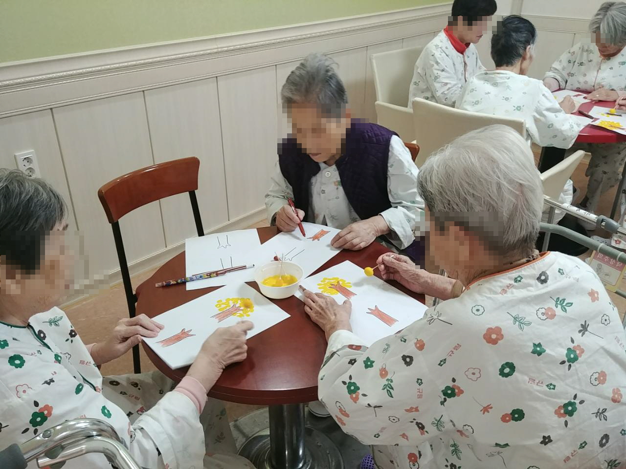 처음엔 가지만 덩그러니 색칠하려니 의아해하시던 어르신들도 과정을 이해하고나서는 적극적으로 꾸며주셨습니다.